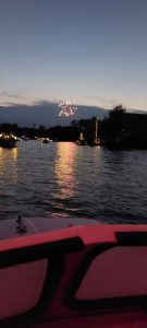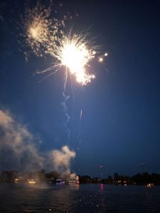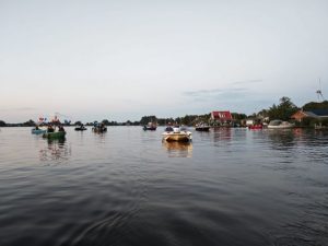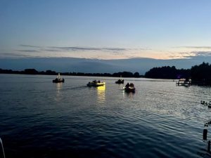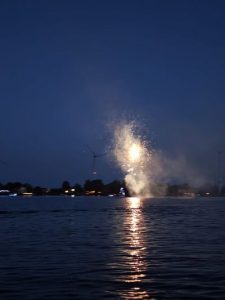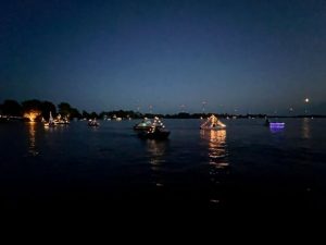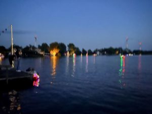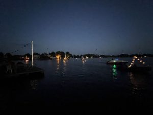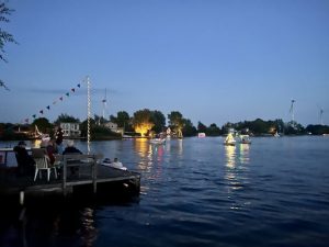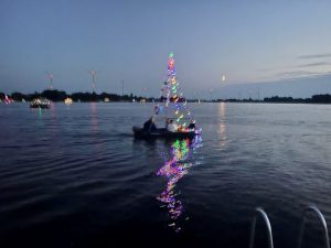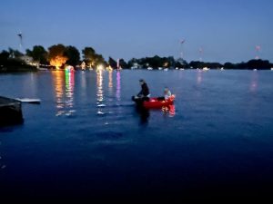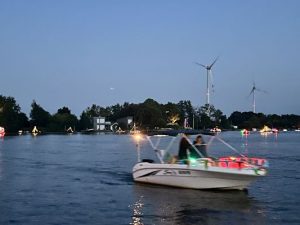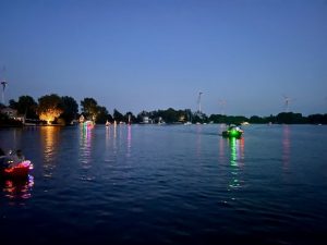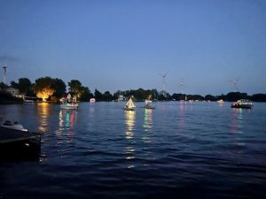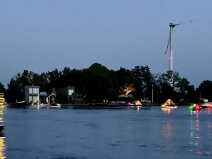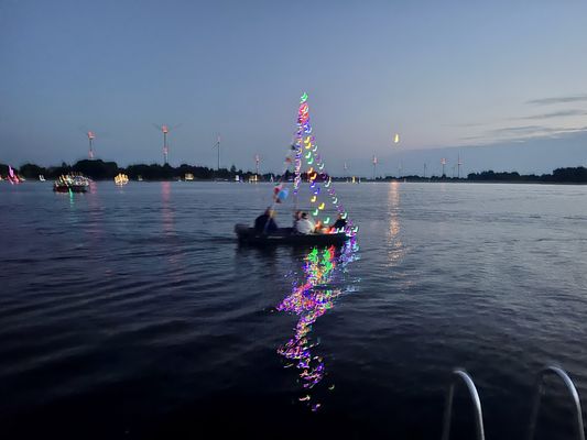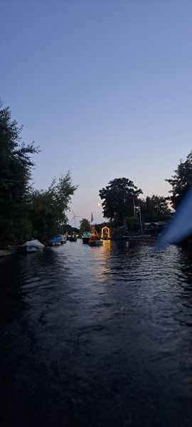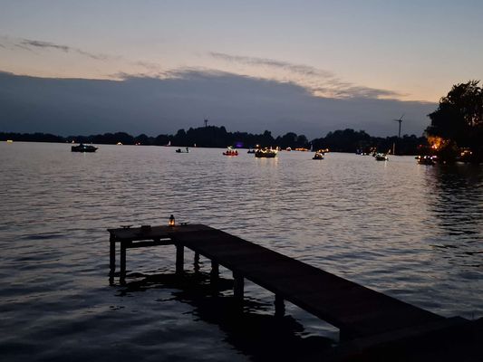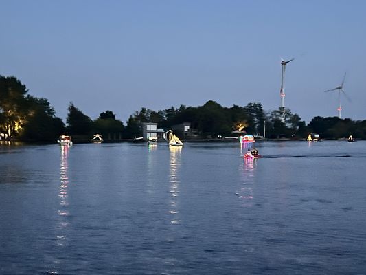 Die Wochenendhäuser rund um das Gewässer waren festlich illuminiert, viele Boote